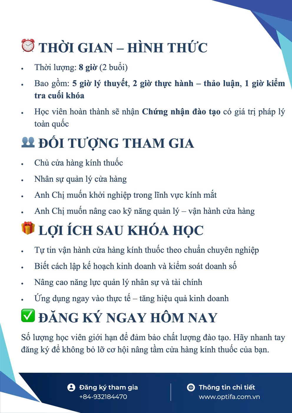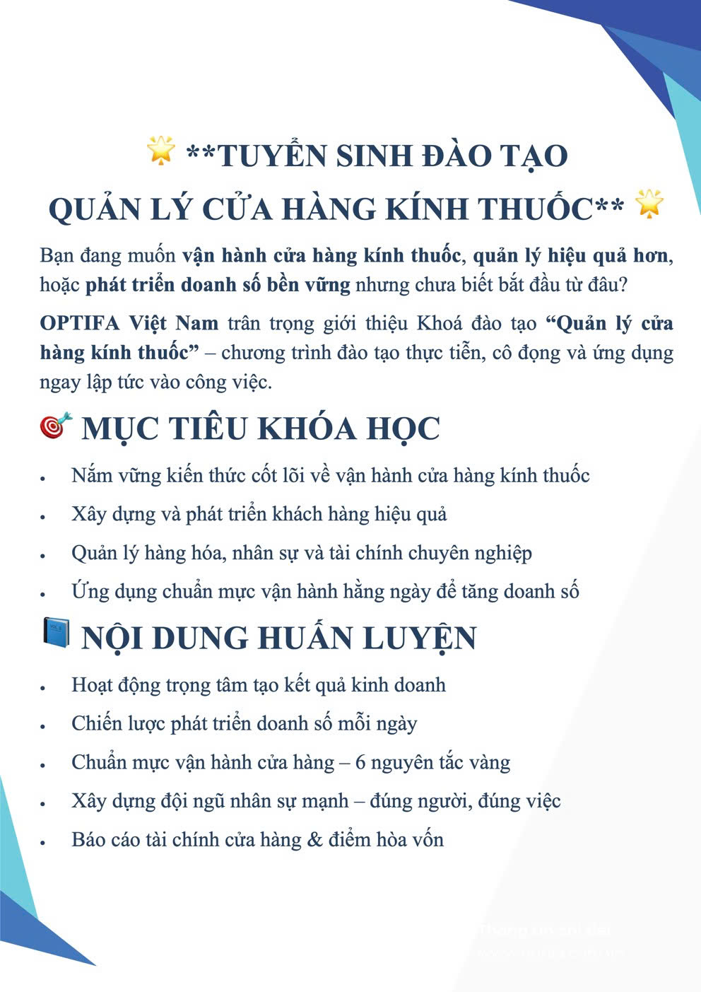 Tuyển sinh QUẢN LÝ CỬA HÀNG KÍNH THUỐC